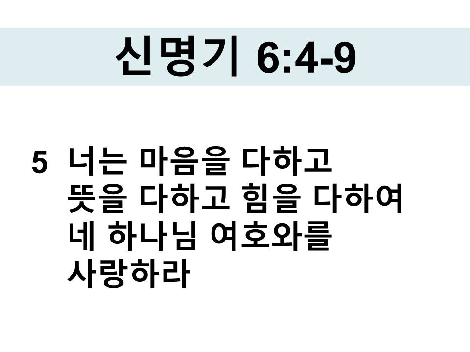 5 너는 마음을 다하고 뜻을 다하고 힘을 다하여 네 하나님 여호와를 사랑하라