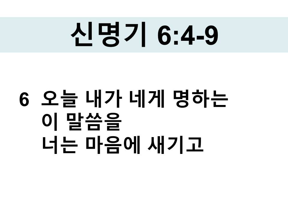 6 오늘 내가 네게 명하는 이 말씀을 너는 마음에 새기고