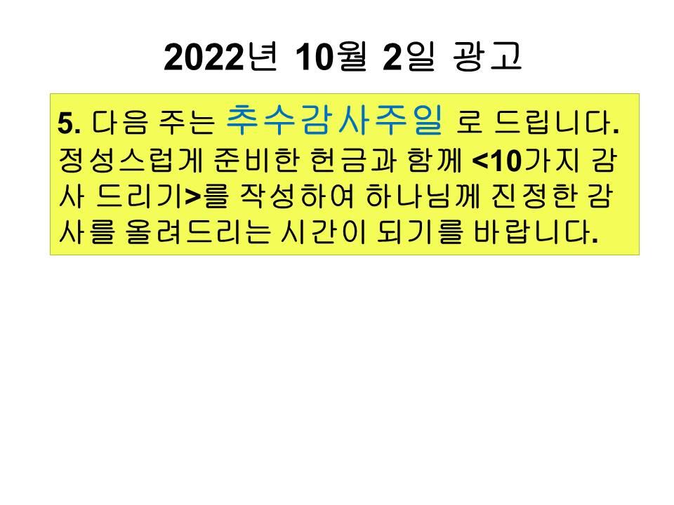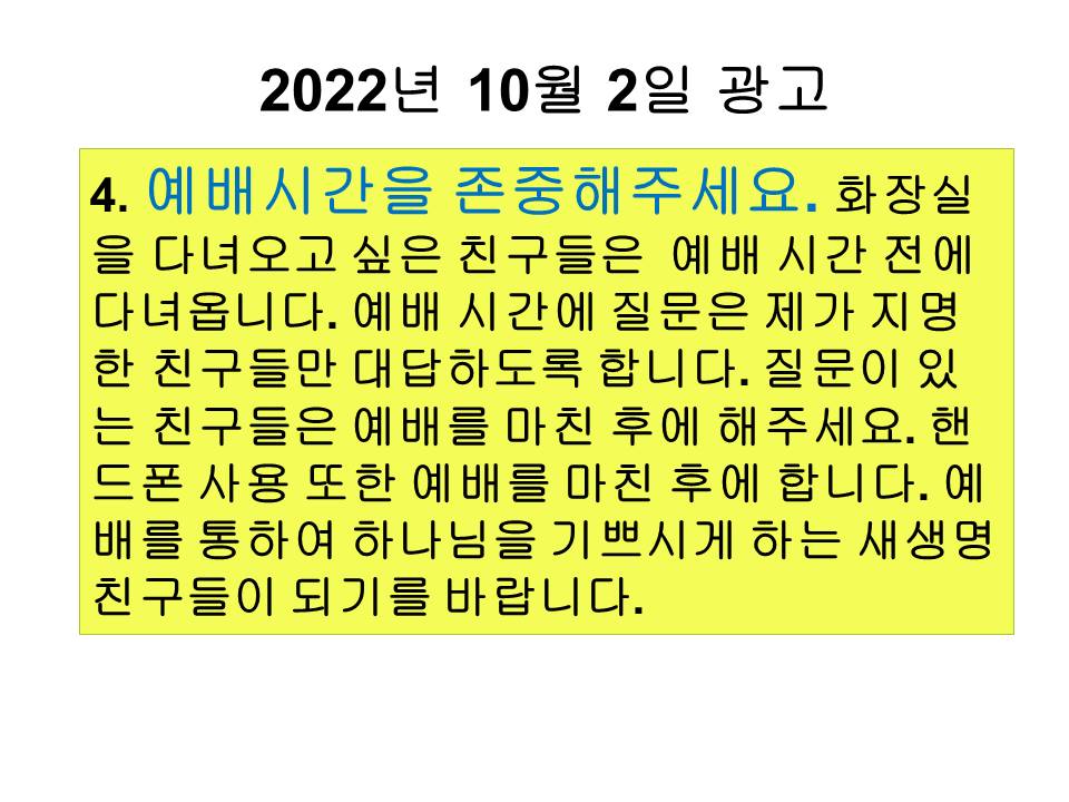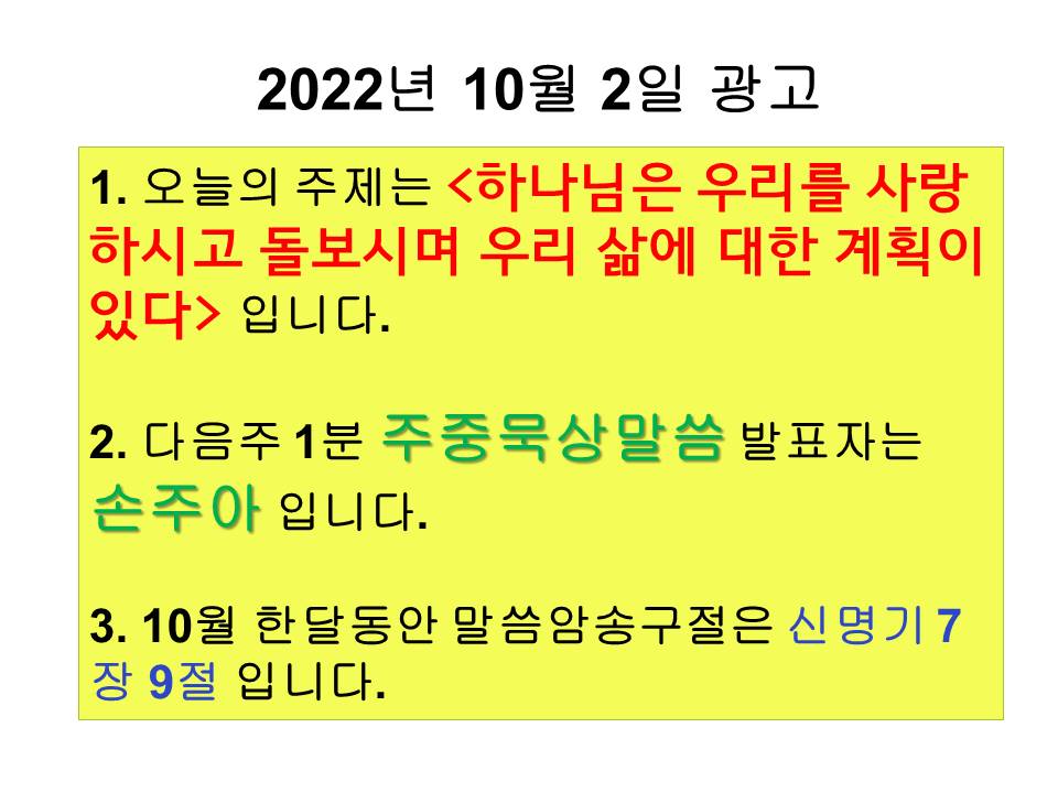 20221002 교회학교 광고 및 하나님말씀