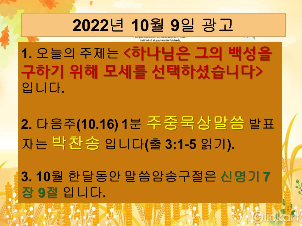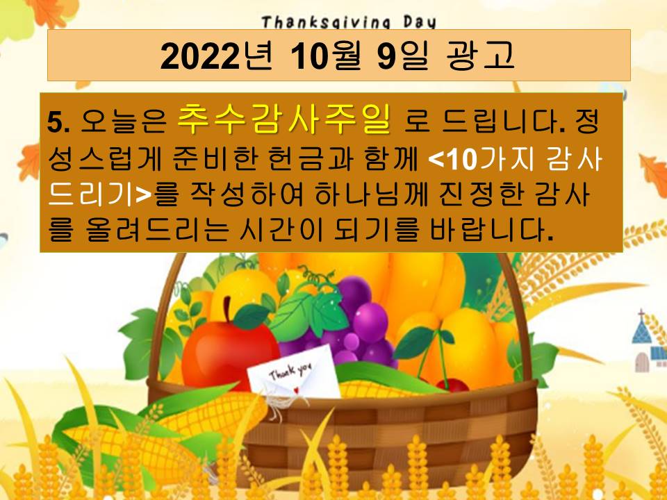 20221009 교회학교 광고 및 하나님말씀(추수감사주일)