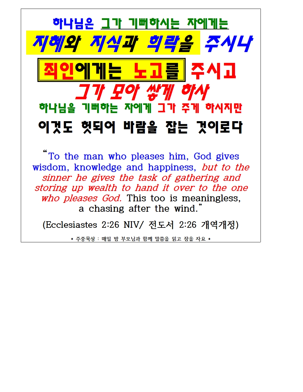 20250309 교회학교 말씀암송 구절 / 전도서 2장 26절