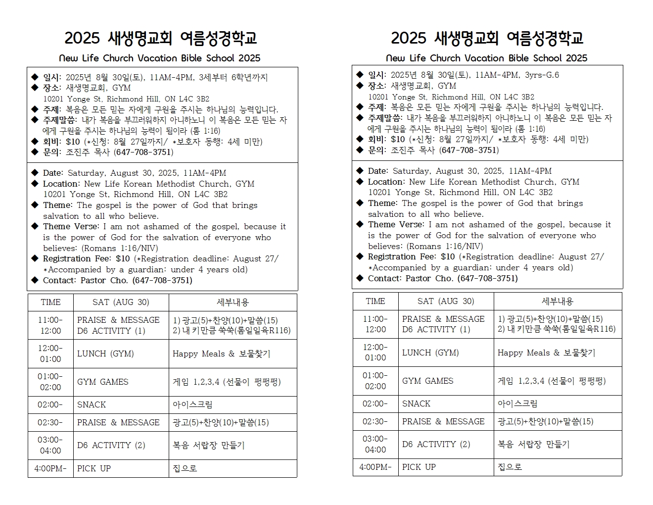 2025 새생명교회 여름성경학교 안내