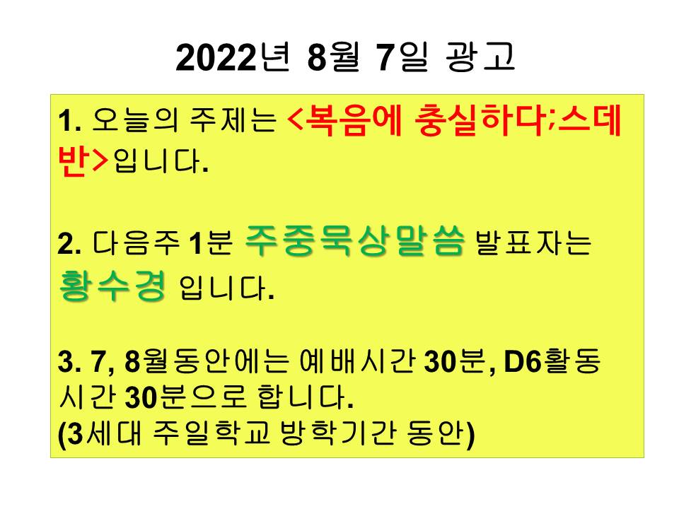 - 이전글 20220814 교회학교 광고 및 하나님말씀 22.09.18