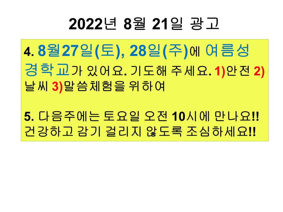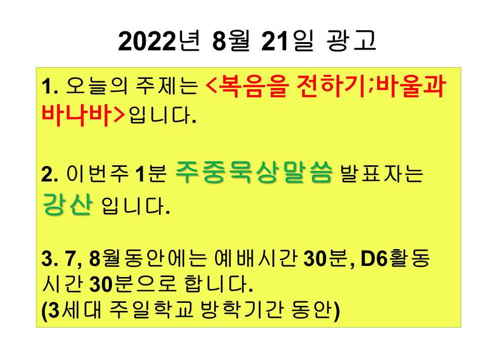 20220821 교회학교 광고 및 하나님말씀
