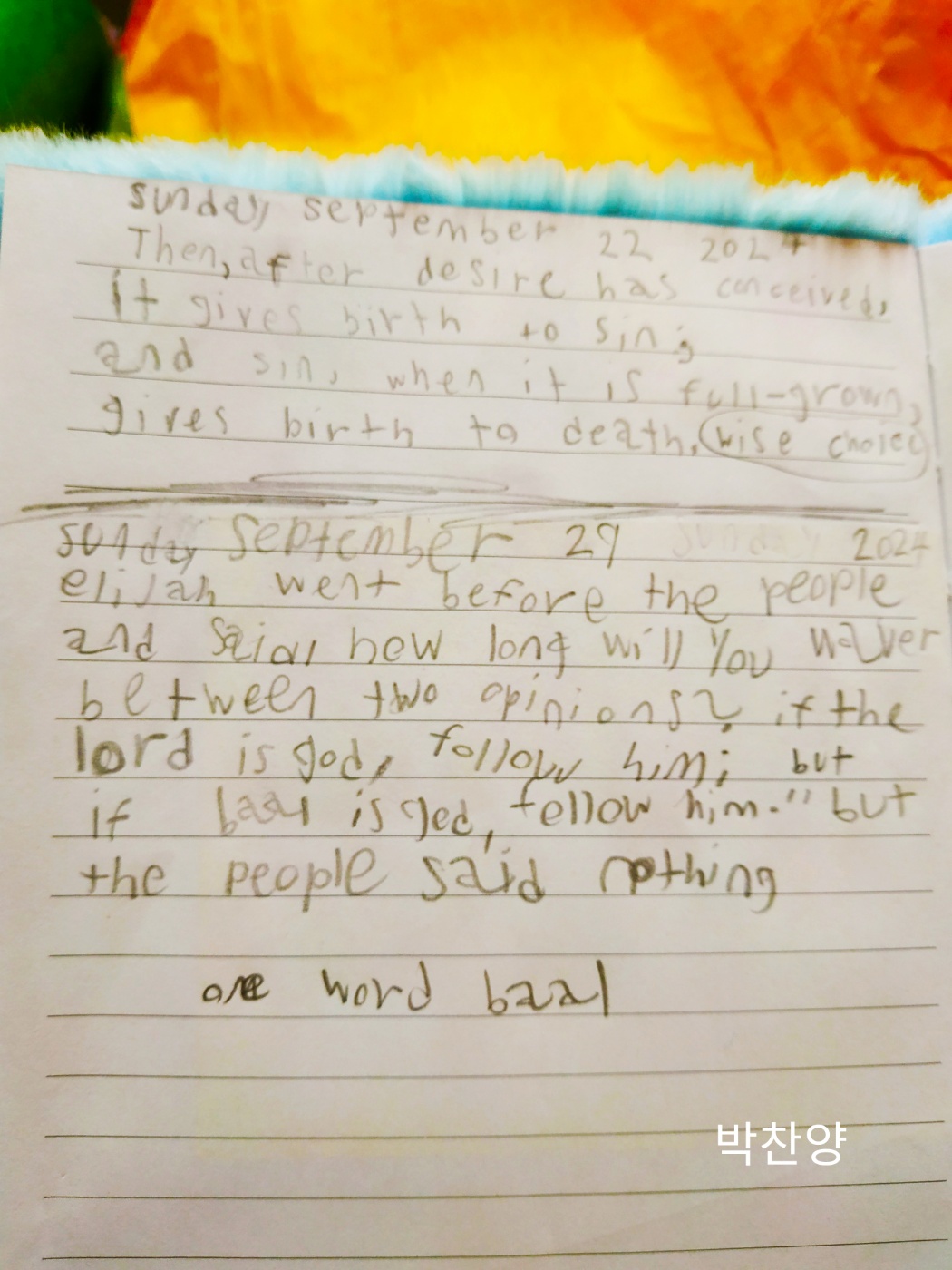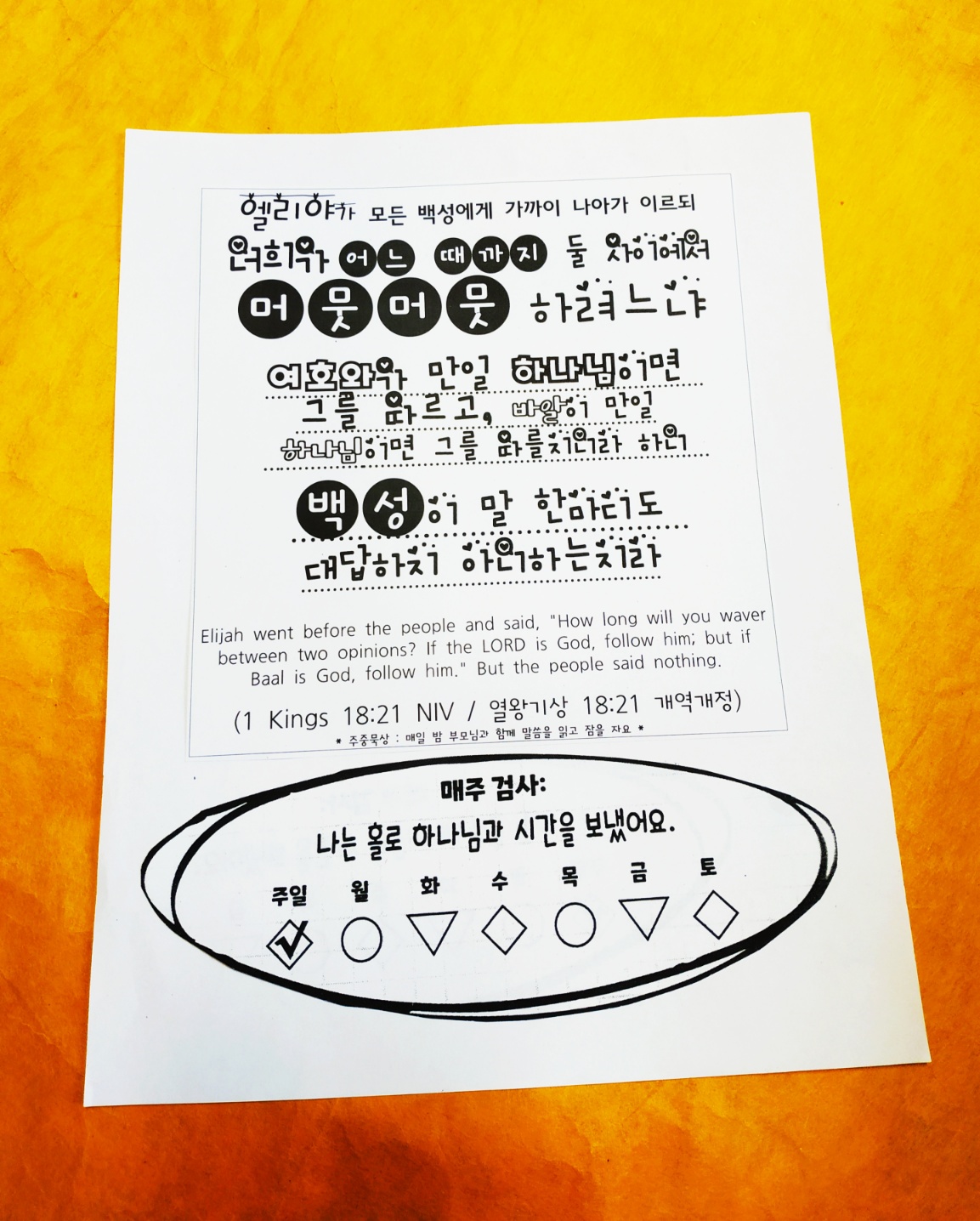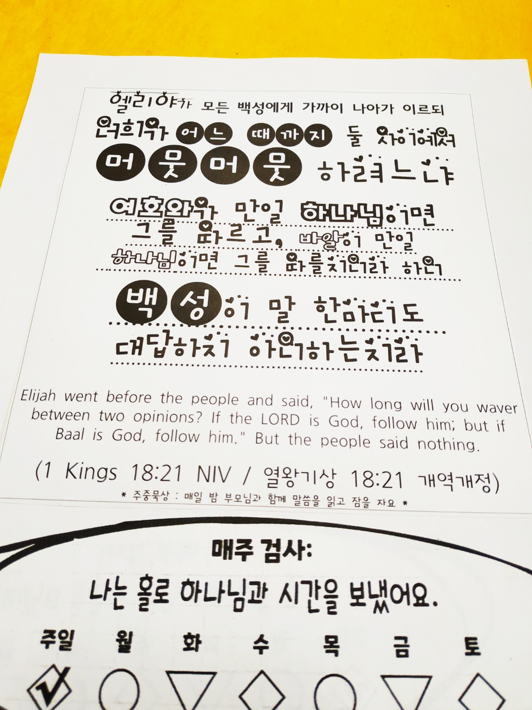 20240929 D6활동 / 성경말씀쓰기 / 열왕기상 18장 21절 말씀