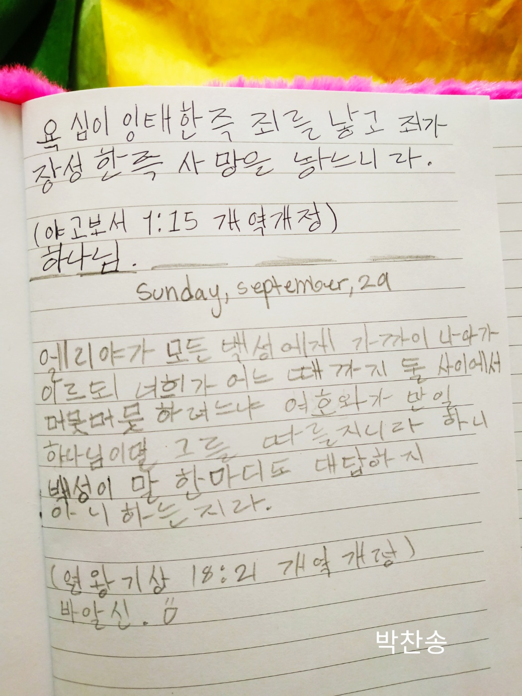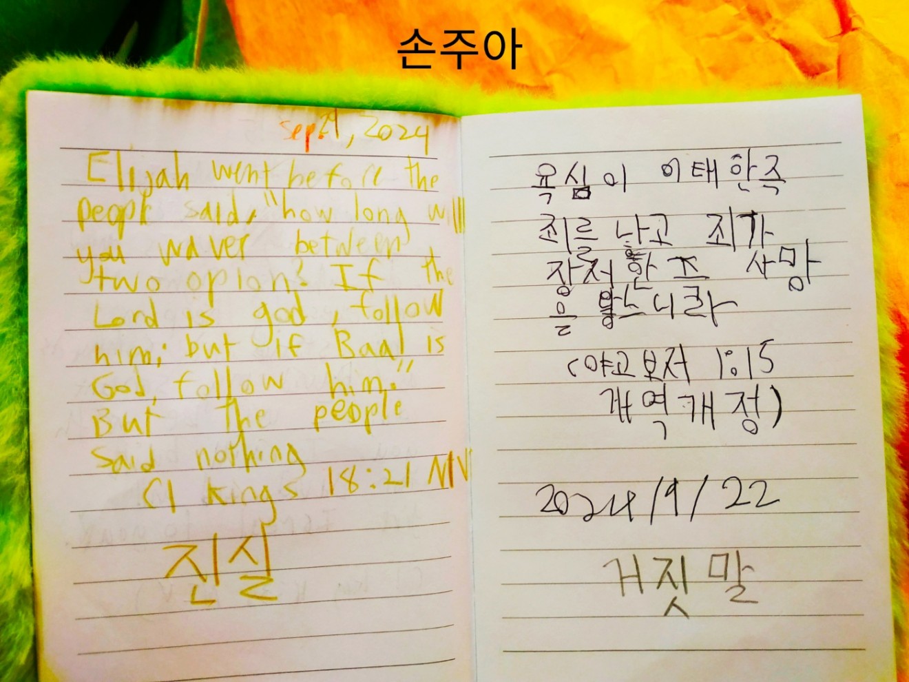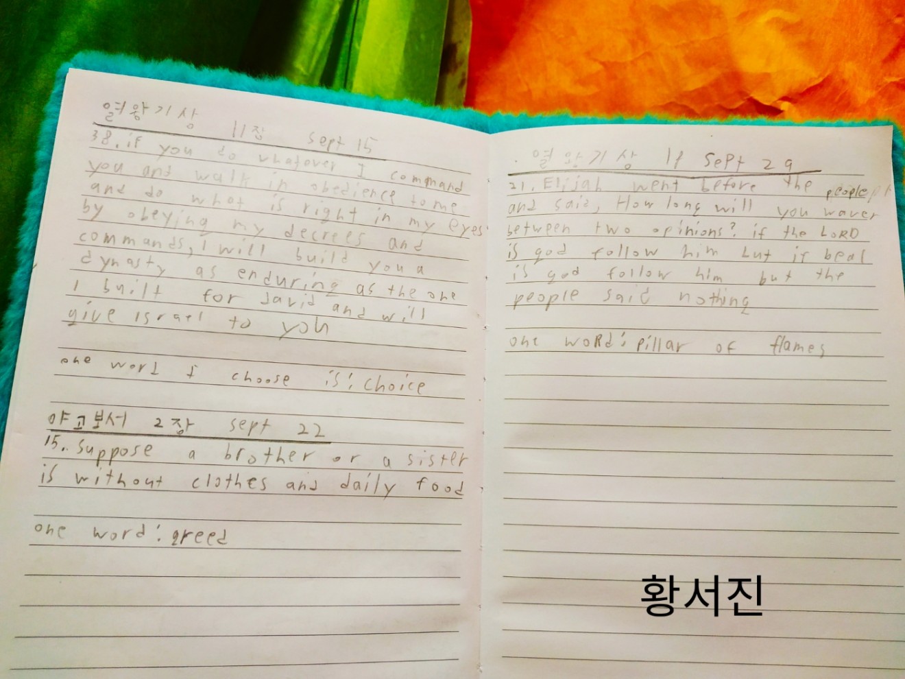 20240929 D6활동 / 성경말씀쓰기 / 열왕기상 18장 21절 말씀