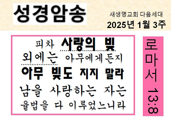 20250119 어린이말씀암송구절 /로마서 13장 8절