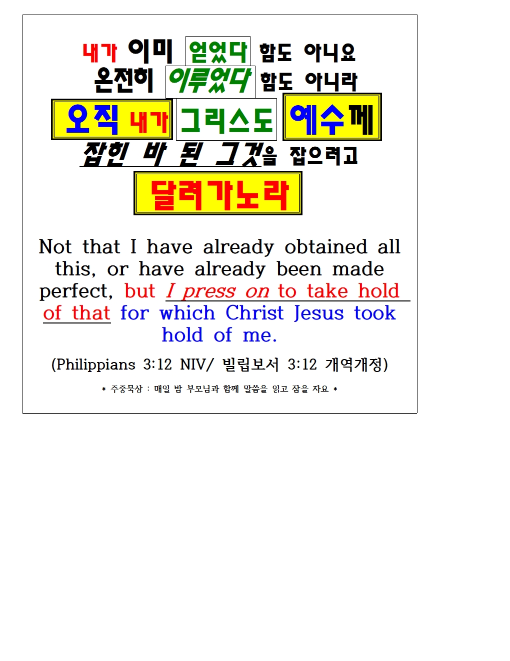 20250223 교회학교 말씀암송 구절 /빌립보서 3장 12절