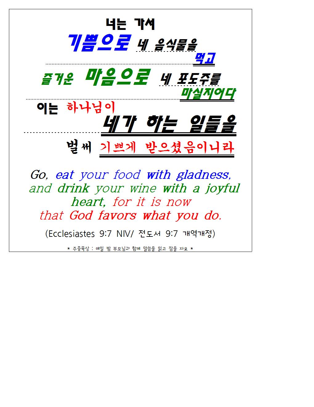 20250323 교회학교 말씀암송 구절 / 전도서 9장 7절