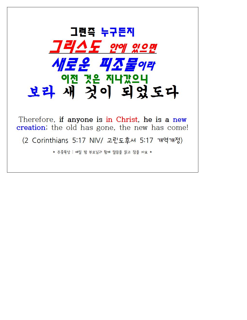 20250413 교회학교 말씀암송 구절 / 고린도후서 5장 17절