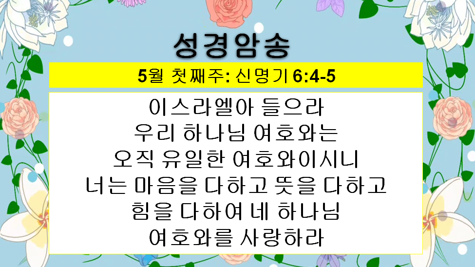 - 이전글 20250511 교회학교 말씀암송 구절 / 신명기 6장 4-5절 +6절 25.05.24