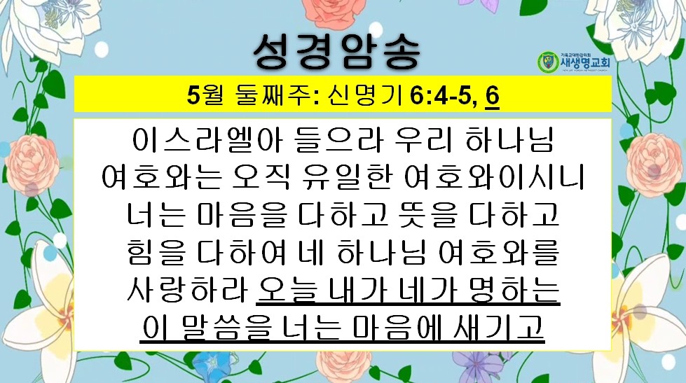 20250511 교회학교 말씀암송 구절 / 신명기 6장 4-5절 +6절