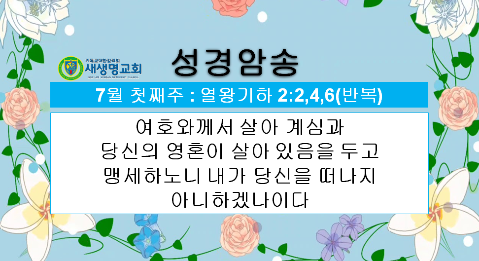 20250706 교회학교 말씀암송 구절 / 열왕기하 2장 2,4,6절 (반복)