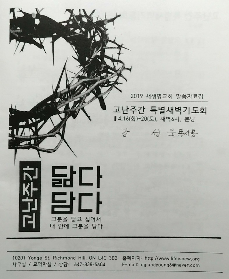 고난주간 특별새벽기도회를 통해서 수고하신 모든 분들께 감사드립니다.