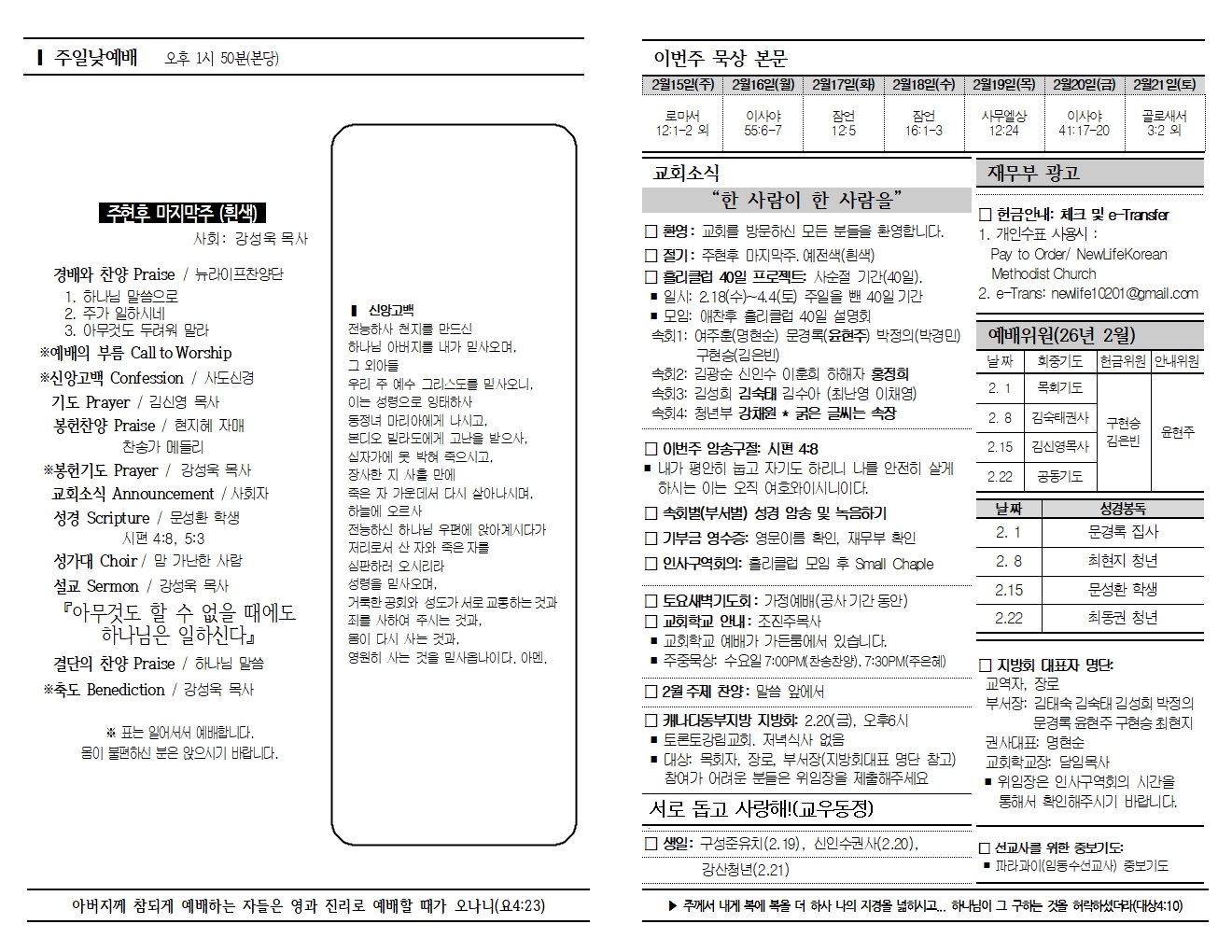 - 이전글 2026년 3월 1일 교회소식 및 주보 26.02.28