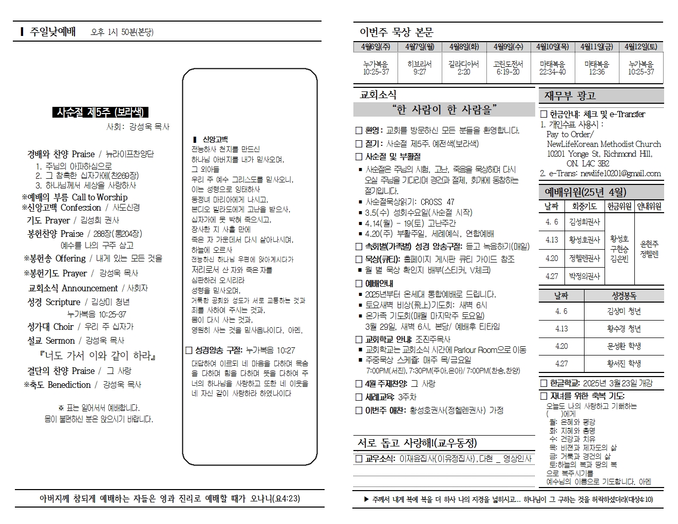 20250406 교회소식 및 주보
