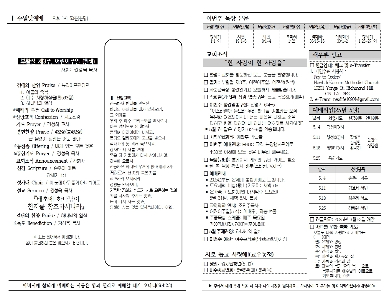 20250504 교회소식 및 주보