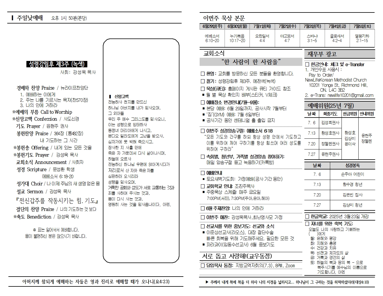20250629 교회소식 및 주보