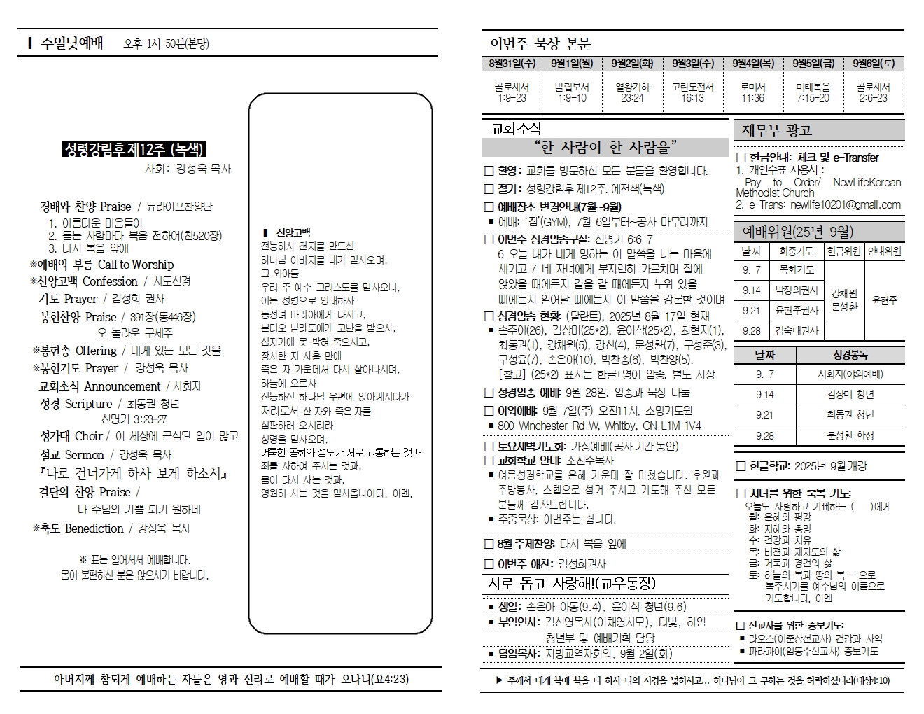 20250831 교회소식 및 주보