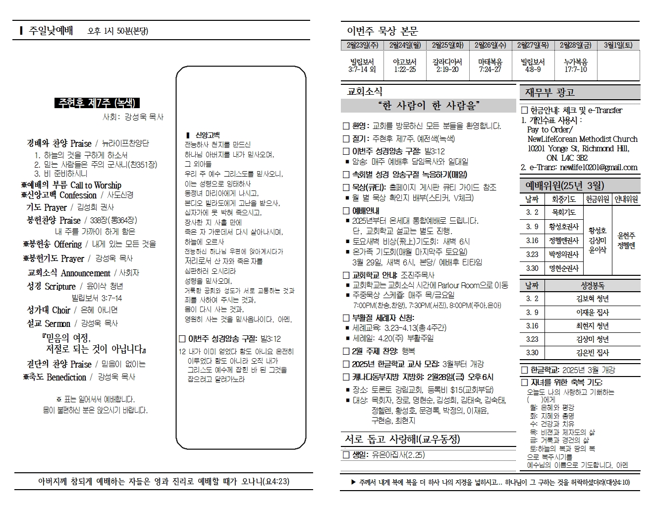 20250223 교회소식 및 주보