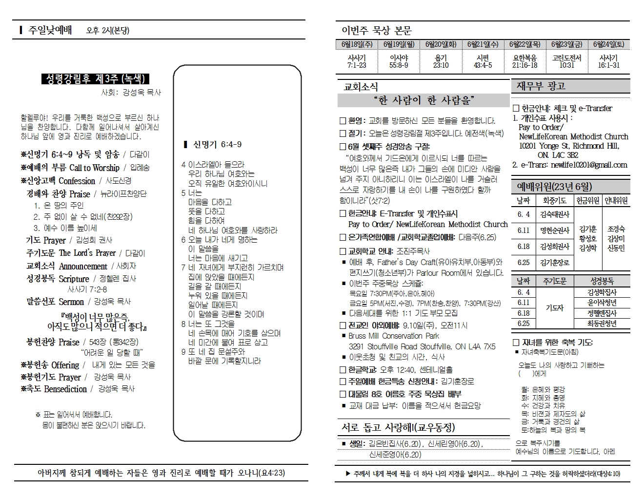 20230618 교회소식 및 주보