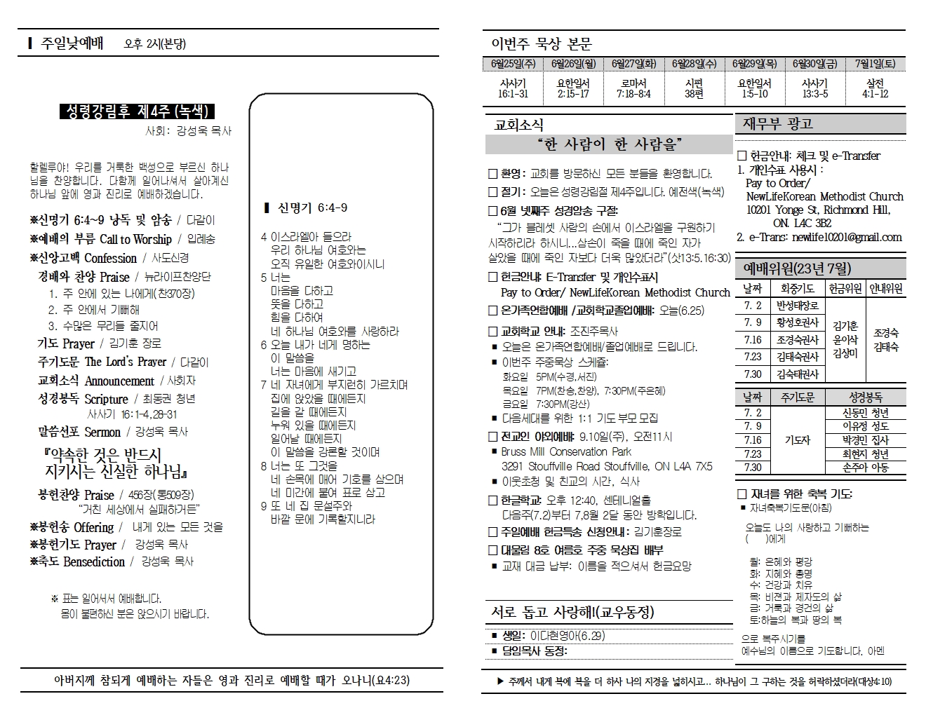 20230625 교회소식 및 주보