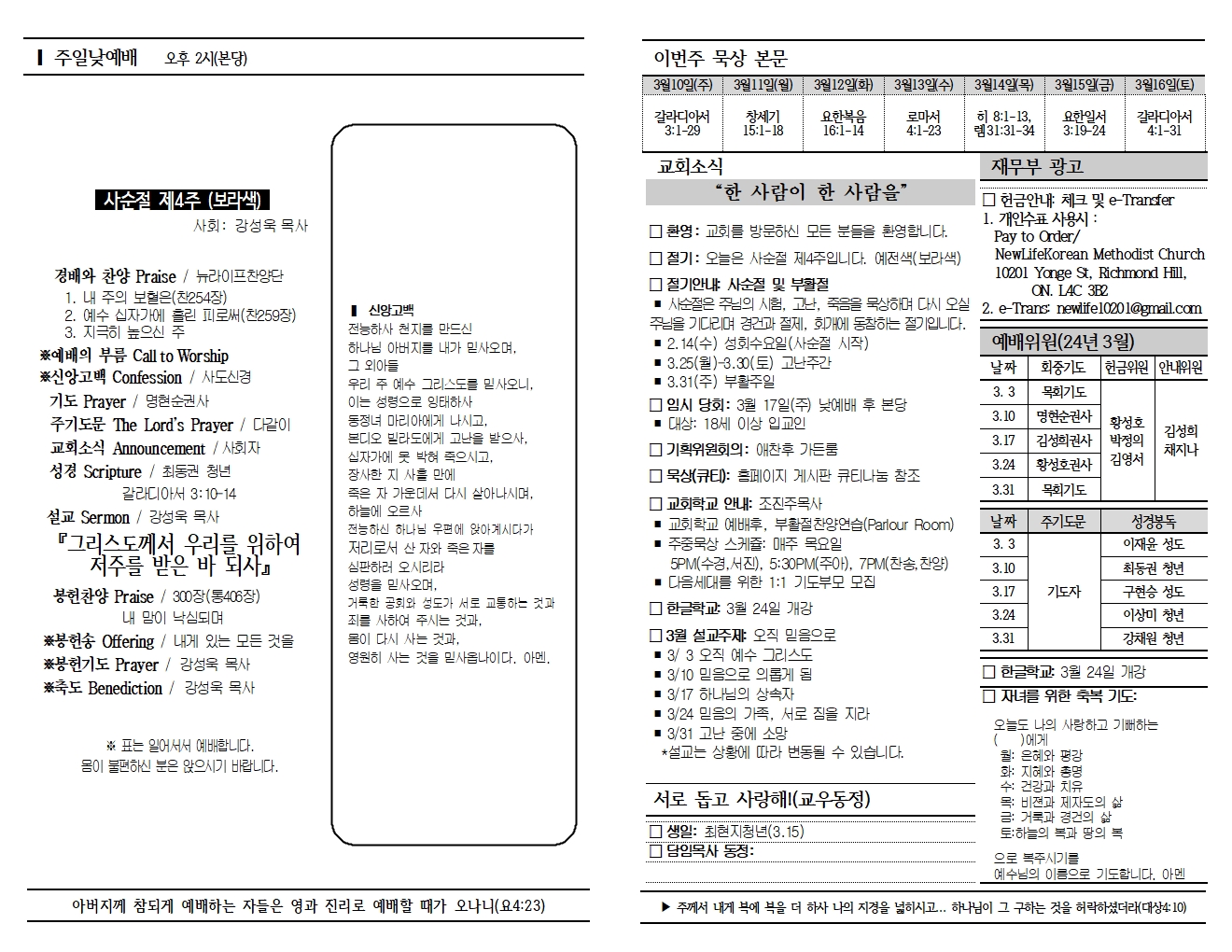 20240310 교회소식 및 주보