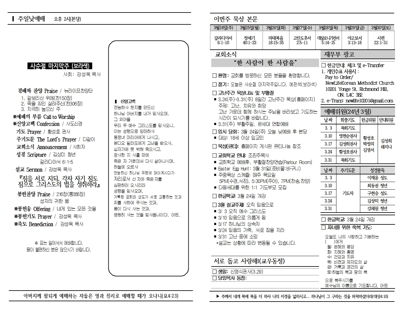 20240324 교회소식 및 주보