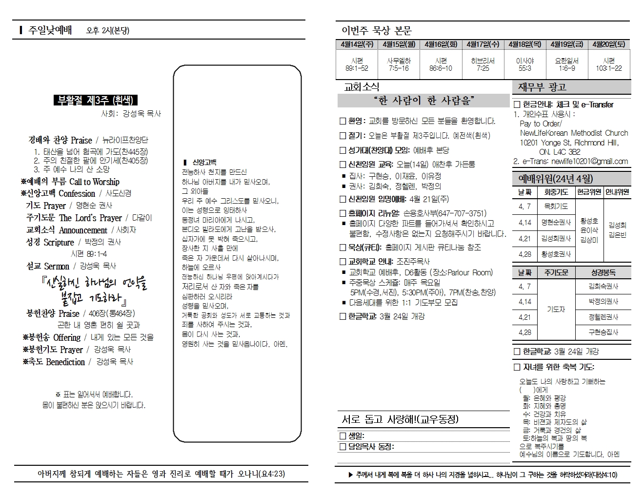 20240414 교회소식 및 주보
