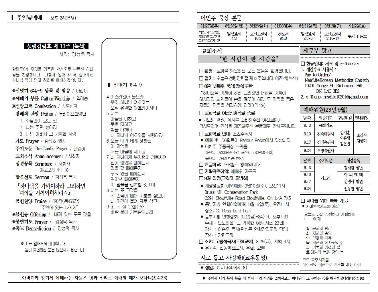 20230827 교회소식 및 주보