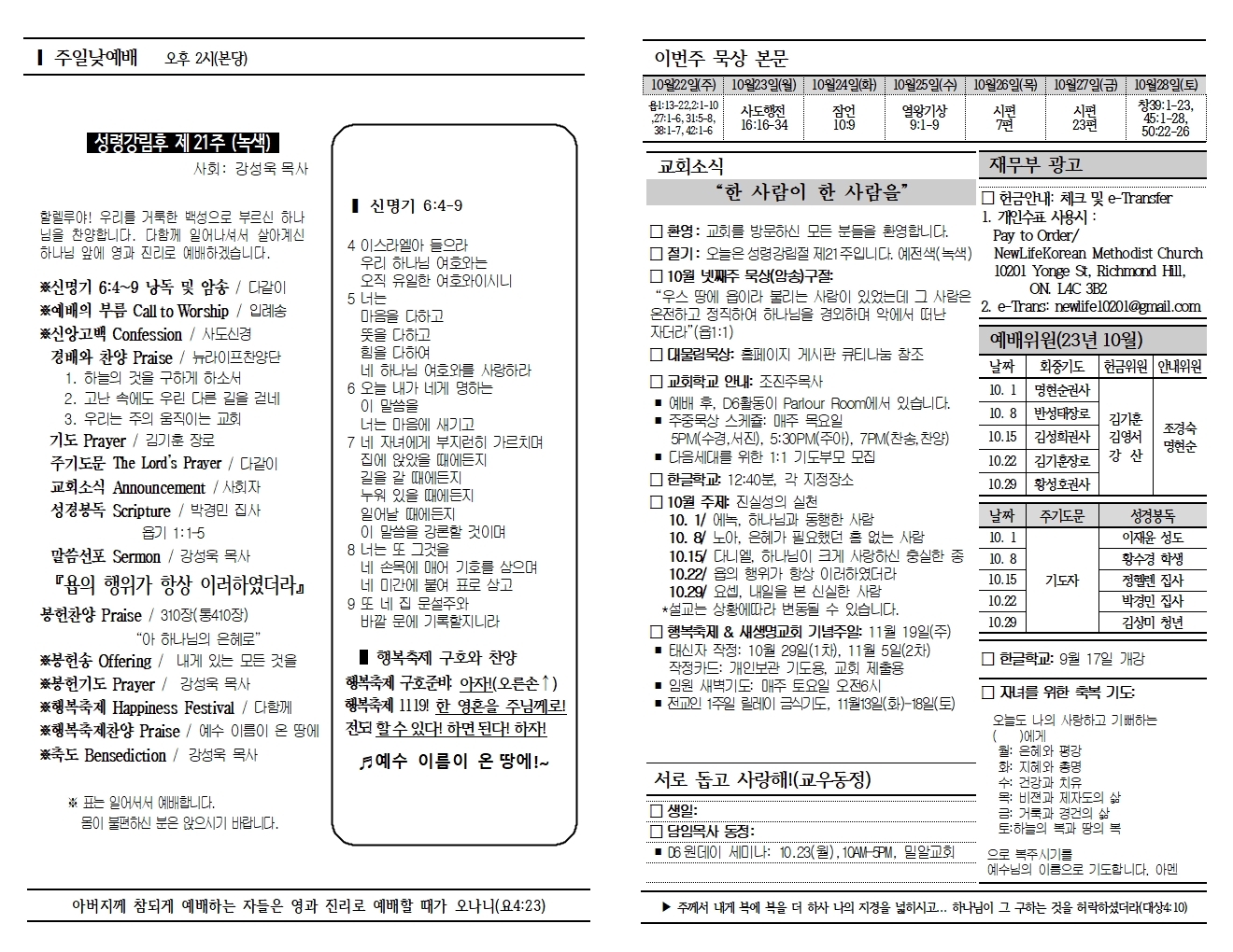 - 다음글 20231015 교회소식 및 주보 23.10.15