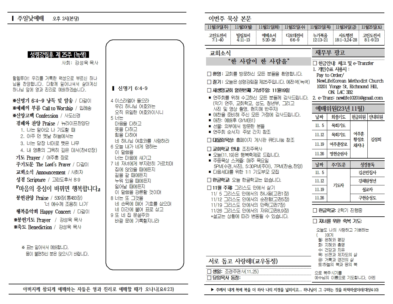 20231119 교회소식 및 주보 (행복축제)