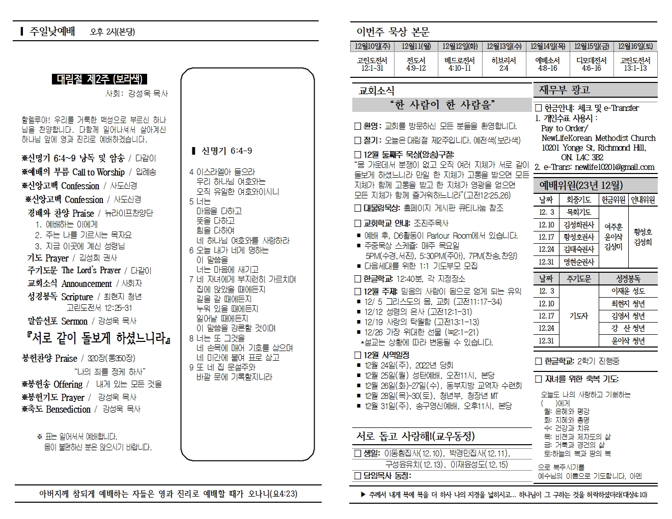 20231210 교회소식 및 주보