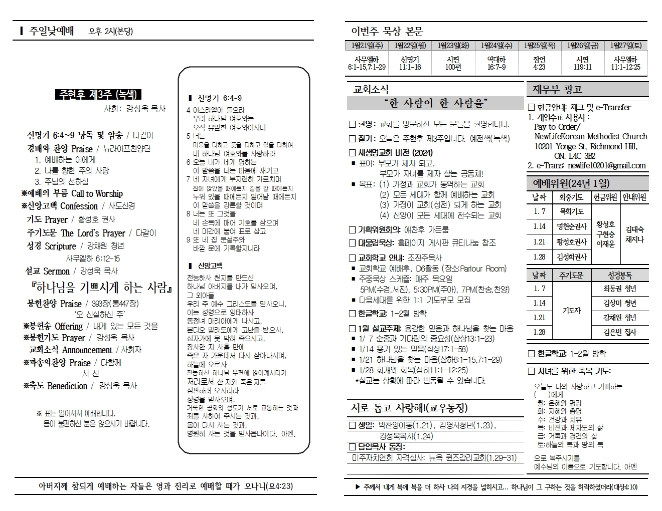 20240121 교회소식 및 주보