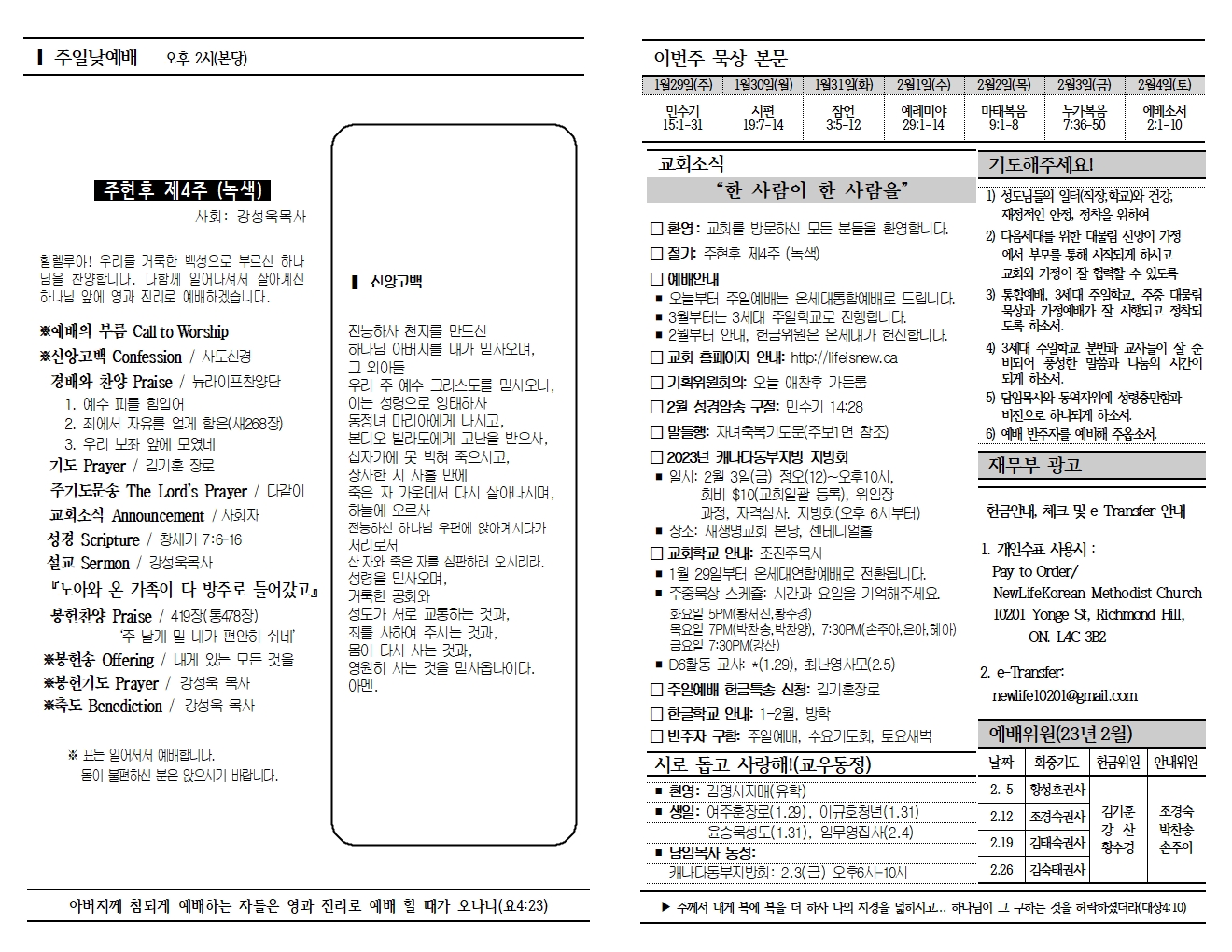 20230129 교회소식 및 주보