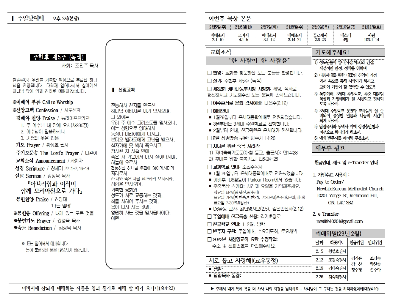 20230205 교회소식 및 주보