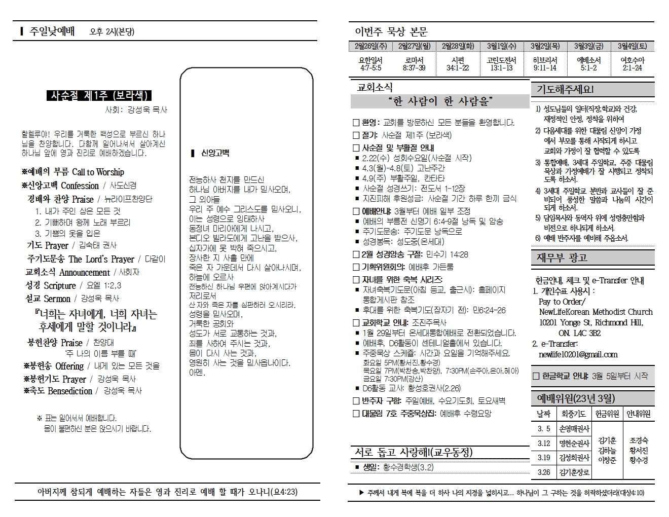 20230226 교회소식 및 주보